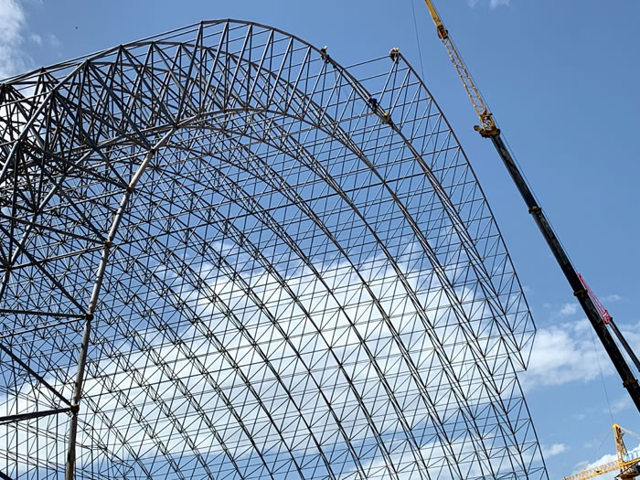 (2)网架加工前应对现场尺寸进行复测,确认无误后方可进行加工、安装;网架制作、运输、安装应遵守《空间网格结构技术规程》JGJ7-2010、《钢网架耒阳螺栓球节点》JG/T 10-2009、《钢网架耒阳螺栓球节点用高强度螺栓》 GB/T 16939-2016、《耒阳钢结构耒阳工程耒阳施工规范》 GB50755-2012、《耒阳钢结构耒阳工程施工质量验收标准》 GB50205-2020。